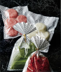 バリア性のあるナイロンフィルムに格子柄を印刷し高級感を持たせ、より商品を引き立たせるオリジナル規格袋です。 酸素バリア性がありカビの発生、酸化による品質の劣化を抑止する効果があります。 真空/ボイル用耐熱95℃30分 100枚帯どめです。 |