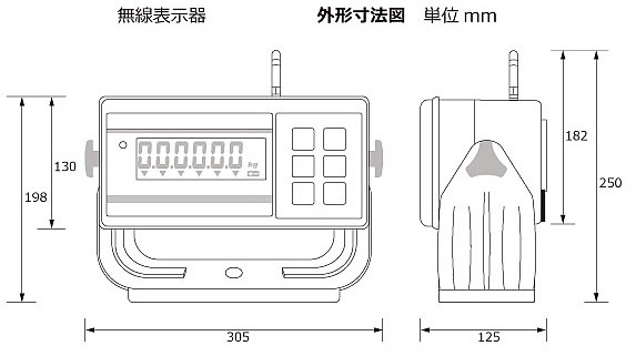 ■寸法図 ![]() ![]() ■手元無線表示器 寸法図 ![]() ■専用架台 ![]() ■手元無線表示器 仕様