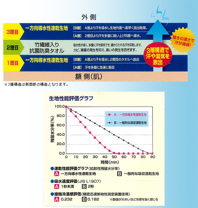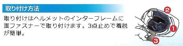 | ■特長 ●一方向導水性速乾生地 竹繊維の抗菌防臭タオルによる多層構造。肌触りが良く、不快な汗を多量に吸収し、ムレ、臭いを抑制します。 ●ヘルメットのフィット感が向上 上下に頭を動かした時のヘルメットのズレによる 煩わしさを軽減します。 ●取り付け簡単。ヘルメットのインナーフレームに、面ファスナーで 取り付けるだけ。 ●取り外して洗濯可能。いつも清潔にご使用頂けます。 ![]() ![]() ![]() ■仕様