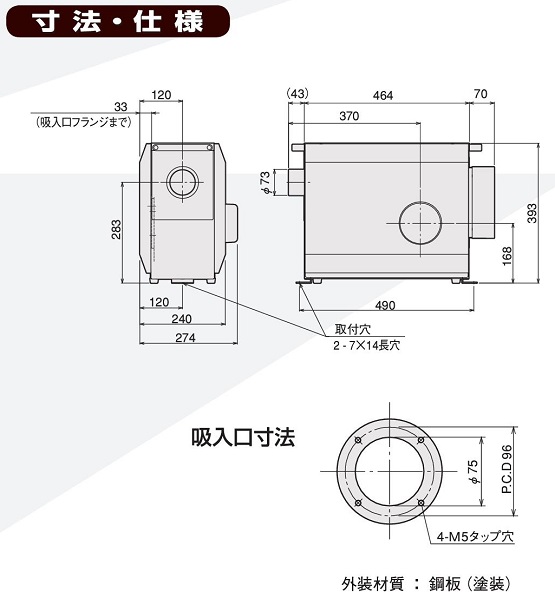 吸入口径 φ75mm(可動式ダンパー付属)