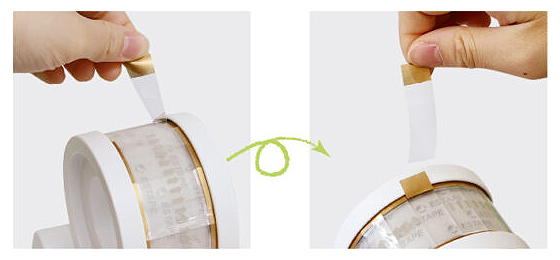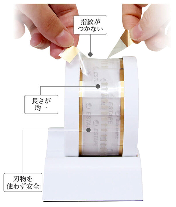 ●つまみを引っ張るだけで同じ長さのテープが取れる。
