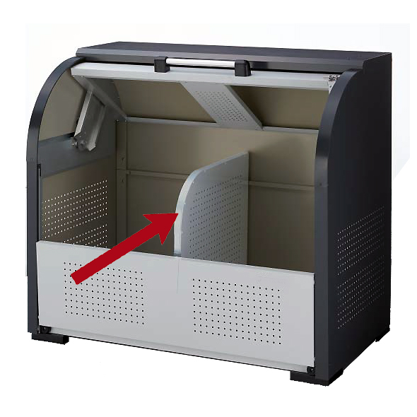 | ■特長 ●デッドスペースが少なく、だれでも操作がしやすい回転式上扉 ●高耐久のロータリーダンパーを標準装備。(左右1個ずつ) ●内側からレベル調整が可能 ●世帯数の少ない集合住宅や店舗などに最適 ■各部特長 ![]() ■寸法図 ![]() ![]() ■仕様