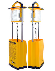 ヘビーデューティーな産業用充電式ポータブル投光器です。 発電機や電源のとれない場所での照明に最適です。 プラスチックマレットでたたいても壊れないタフな樹脂を使用。 コンパクトに持ち運べて、片手ワンプッシュで素早く展開。 ヘッド部は60度のチルトが可能。 |