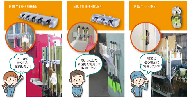 マグネットで簡単設置 清掃用具等スッキリ収納出来ます。 |