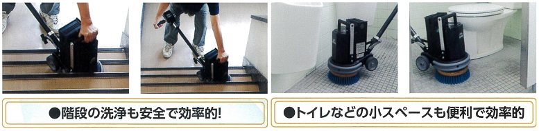 ■特徴 ●コードレスだから洗浄作業が早く、効率的&安全に。 ●階段だけでなく、小スペースの洗浄にも大変便利。 ![]() ●新伸縮ハンドル 調整レバーで簡単に長さが変えられ、しっかりホールドします。 ![]() ■仕様