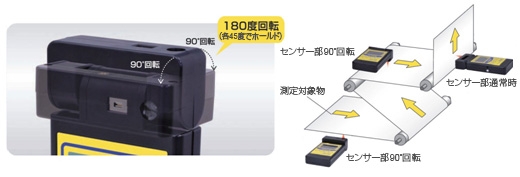 ■特長 首振り機能付きで測定しやすい、ハンディタイプの静電気レベルメーター ●ロータリーセンサーヘッドの採用で、どんな場面でも測定値を簡単に確認 各45度でホールドし、180度回転するヘッド ![]() ●電位測定モードは2つ [電位の測定] 時々刻々の帯電物の電位、帯電電位の最大値の2種類を測定できます。 オプションの人体帯電測定用プレートを取り付けると、測定が難しい人体帯電電位が測定できます。 ※電位の測定は、帯電物に対しての測定です。 ※ホールドボタンで測定値を一時的に保持できます。 [イオンバランスの測定] 静電気除去装置のイオンバランスを測定できます。 ※測定対象物のイオンバランスを測定するわけではありません。 ![]() ●測定値の表示は「KV単位」