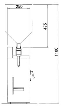 | ■特長 ●充填ポンプの交換で1ml~最大800mlまで高精度で安定した充填も可能 ●製品中に含まれる固形物も破壊せず充填します。 ●接液部の構造がシンプルなので分解&洗浄&組立てが簡単 ●容器昇降は200mmで広い範囲の充填に対応できます。 ●本体はアルマイト処理カバーはSUS(電気プレートのみ焼き付け塗装) ■寸法図 ![]() ![]() ■仕様