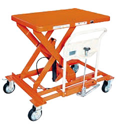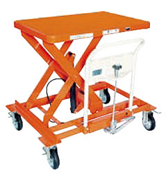 ●自在車輪には安全ブレーキを装備しています。 ●高耐久性の油圧ポンプに強靭なシリンダを装備し、安全で快適な昇降を実現します。 ●高剛性のフレームに油圧ポンプ、シリンダをコンパクトにまとめた親切な設計です。 |