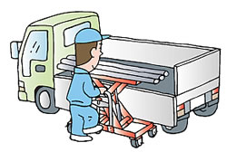 | ■用途 ●長尺物・大物の運搬・昇降や作業台として。 ■製造国 ●日本 ■注意 ●荷物をのせたテーブルを上昇したままの状態で移動はしないでください。 ●車上渡しのため、お客様での荷降ろしが必要です。 ■簡単な操作方法 ポンプペダルを踏めば上昇し、レリーズハンドルを回せば下降します。 自在車輪は全てストッパー付で安全。 ■使用例 ![]() ■握りやすいレリーズハンドル。 回し加減で下降速度を調整できます。スプリングバック機構 下降操作中、レリーズハンドルから手を離すとスプリングの力でレリーズハンドルを締め、テーブルの下降を抑えます。 緊急時に被害を抑える事ができます。 ハンドルエプロンをプレス型で製作。 強度が上がり、下降操作中に荷物に挟まれる危険性が下がりました。 ![]() ■早送りなしタイプのみこのペダルです。アルミダイキャスト製で、面積を広くし踏みやすい形状になりました。 ![]() ■ポンプの種類 アルミダイキャストでポンプを製作。異物の発生を抑え、自然降下の発生率を抑えます。