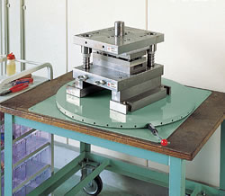 軽い力で簡単に360°回転します。 回転止めストップ機構付です。 (1ピッチ約10度36等分) 金型の修理、部品の組み立てに最適です。 |