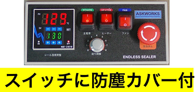 | ■特長 ●上下ヒート方式ですので、ガゼットタイプの袋、厚手のアルミの袋もばっちりです。 ●1000パック以上も短時間で仕上がりますし、仕上がりもきれいです。 ●シール温度、コンベアの速さ、シール圧が調整可能なので、さまざまな袋に対応できます。 ●日本製テフロンベルトを採用。 ![]() ●温調コントローラーがデジタル式になりさらに使いやすくなりました。 ![]() ●スイッチに防塵カバー付き ![]() ■使用例 ![]() ■ベルト進行方向:左から右(M2397T-271ESL・M2397T-271-W5ESL) ![]() ![]() ※画像はM2397T-271ESL ![]() ![]() ![]() ■仕様