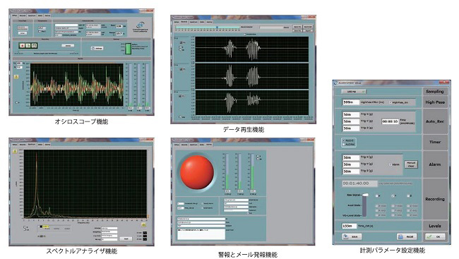 | ■製品解説 加速度振動、衝撃や傾きを記録することができる、新世代のスマートデータロガーです。本器は、3 軸 MEMS 加速度計、正確な日付 / 時刻クロックおよび 16Mバイト の記録用不揮発性メモリから構成されています。本器は設定に応じて数ヶ月間の振動加速度信号および RMS レベルを記録することができます。超小型設計のため、被測定物に貼ったり、監視対象機器の中に埋め込むことができます。 ■特長 ● 3- 成分 MEMS 加速度計内蔵 ● 加速度振動の計測と記録: ○時系列データ(gまたは m/sec2) ○統計値(最大値、最小値、平均値) ○振動レベル (dB または Lin) ○傾斜データ(°) ● 完全デジタル設計です。 ● オシロスコープ機能を内蔵し振動を実時間表示。 ● 振動記録中でも記録済みデータの観測が可能。 ● スタンダローン動作と PC との USB 接続で計測設定やデータ伝送が可能 ● USB から充電可能な長寿命リチャージャブルバッテリ内蔵 ● 参照信号として重力加速度(g)を利用した自己 1g 校正が可能 ● 加速度信号 100%(ミスサンプル無し)の観測と記録が可能 ● Auto-Rec 機能:数ヶ月間に渡り休眠状態から、加速度信号が設定した閾値を超えた場合 にのみ記録可能。 ● 複数の本器を容易に管理できる編集可能なカスタムIDを設定することができます。 ● 防滴構造でシールされています。 ● LabVIEW ドライバが用意されています。 ● データ後処理用アプリ(スペクトル、フィルタリング等 ) が実装されています。 ■比較表 ![]() ■アプリケーション ● 加速度振動、衝撃、振動の RMS レベルの長期計測と記録 ● 設備機器等の動作状況及び精密機器の輸送環境のモニタリング ● 機械摩耗の連続モニタリング / 回転設備機器や風車などの CMS ● 構造物の長期振動応答モニタリング ● 長期傾斜モニタリング ■周波数応答 ●高域周波数応答 本器はアンチエリアジングフィルタを装備していません。図1は加速度計の周波数応答@ 3.2 kHz サンプリングレイトでの特性です。 ●低域周波数応答 低域応答周波は、必要に応じて、デジタル高域通過フィルタ(HPF) によって制限することができます。カットオフ周波数は調整可能であり、フィルタが高分解能のため非常に低い周波数に調整することができます。図 2 は、1Hz(緑)、5Hz(赤)と 10Hz(白)カットオフでの応答であり、3.2 kHz のサンプリング周波数で調整した HPF の低周波応答 特性を示しています。 ![]() ■マネージャアプリ仕様 ![]()