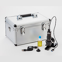 本機は幅広いズーム機能を搭載した血流スコープです。指先の血流観察はもちろんのこと、専用台から取り外しハンディー操作ができますので、肌のキメや皮脂はもちろんのこと肌血流・頭皮血流観察を可能とした卓上・ハンディー兼用の本格的マイクロスコープです。
