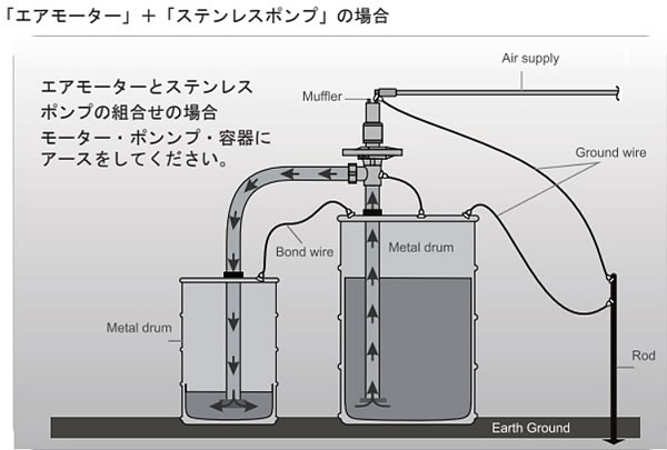 ※可燃性または溶剤性の液体を移送するときは、必ずアース線を接続してご使用下さい。