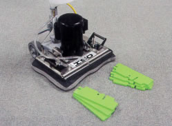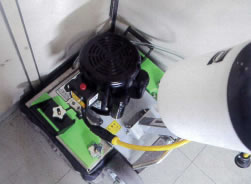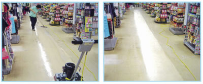 | ■商品概要 ●高速振動により、少量の水だけでも強力な洗浄&研削力を発揮。作業時間を短縮します。 ●全面接地のスクエア(長方形)パッドのため、パッド中央から四隅のコーナーまでどの部分でも均一に洗浄&研削します。 ●ガイドホイールを採用し、従来機に比べて安定性、直進性を向上させました。方向転換もスムーズに行え、初心者の方でも洗浄&研削作業が可能です。 ●スクラブデッキとハンドルをアイソレーターを介して接続することで、ハンドルに伝わる振動を大幅に低減。快適に作業できます。 ●着脱式のウエートでパッド荷重を調節できます。(最大58kg、ウエート10枚使用時) ●バキューム(別売)と組み合わせると、粉塵を気にせずドライ洗浄&研削できます。 ■特長 ●超高速振動回転で均一洗浄・研削 ![]() ●スクエアヘッドで隅の洗浄・研削もOK ![]() ●工具なしでウエートを着脱できます ![]() ●背負い式バキューム(別売)に接続すれば、粉塵をバキュームしながらドライ洗浄・研削も可能 ![]() ■使用現場例 ![]() ■アタッチメント(標準付属品) ●ウエート(2.7kg)・・・6枚 ●ダストスカート・・・1式 ■仕様