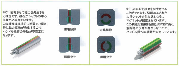 | ■ 特徴 ●人間工学に基づいた、手にやさしいハンドルグリップを採用 ●安心のメーカー保証3年 ●安全係数3.5倍の安心設計 ●ハーフシェフマグネット構造はハンドル解除時の反発を抑制し、高い磁気エネルギー効率を発揮します。 ●大径シャフトのハンドルは強度に優れています。 ●脱着時間が軽減され、作業効率が向上します。 ●ロック機構はグリップが上部スライドする方式で、ハンドルの偶発的接触でのアンロックを防ぎます。 ●使用温度は~80℃まで対応 ●ヨーロッパ規格EN13155に適合 ●高性能ネオジウム磁石を使用 ●電源バッテリー等は不要です。 ![]() ![]() ■メーカー独自のハーフシェルマグネット構造(特許出願中)