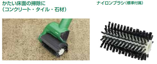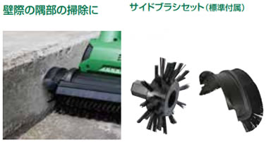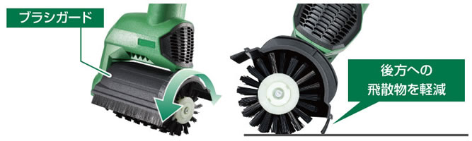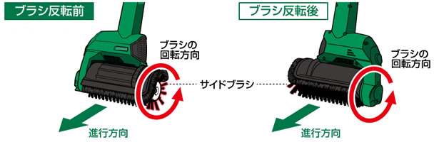 | ■特長 ●縦回転だから左右に振られにくい ブラシの前後移動がスムーズで初めての方でも簡単に扱えます。 ![]() ●縦回転だから溝の汚れをかき出しやすい ブラシが溝にフィットし効率よく汚れをかき出せます。 ![]() ●サイドブラシで隅までキレイ 標準付属のサイドブラシで、壁際の隅部の掃除も同時に行えます。 ![]() ●ブラシ反転で左右どちらの隅にも使える ブラシを180°回転できるので、左右どちらの隅も掃除しやすい設計です。 ブラシ反転後も、ブラシの回転方向は変わりません。 ![]() ●伸縮ハンドルで使いやすい 作業姿勢に合わせて全長を5段階に調整できます。 全長寸法:1,180~1,360mm ![]() ●ブラシガードとコードフック採用 前後どちらにも調整できるブラシガードにより飛散物の巻き上げを軽減します。 ![]() コードフックにより不意のコード外れを防ぎます。 ![]() ■家周りはもちろん様々なシーンで手軽にキレイ ![]() ![]() ※壁や天井、傷つきやすい床には使用しないでください。 また、使用中に機体を持ち上げないでください。 ※機体は防水構造ではないため、水や洗剤をまくときは機体にかからないように注意してください。 ■仕様