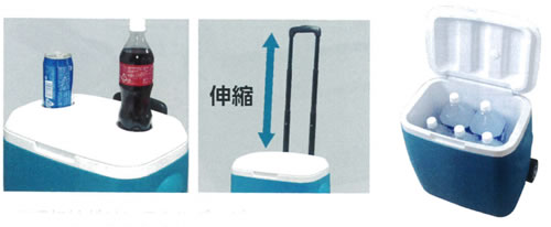 | ■特長 ●フタにはドリンクホルダーがついています。 ●フタ・本体ともに発泡ウレタン注入で保冷力が優れています。 ●耐衝撃性に優れたポリエチレン製です。 ●伸縮式キャリーハンドルと大型ホイールで移動が楽にできます。 [材質]本体・フタ:ポリエチレン ![]() ■使用例 ![]() ■仕様