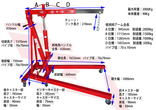 油圧手動アームリフト2TON/M2940R-2000KG 最大荷重:2トン