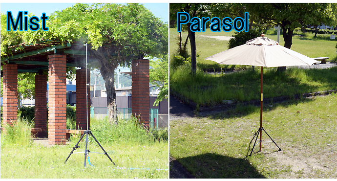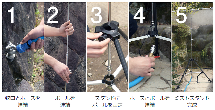 体温でも気温でもない、地面を冷やす細霧冷房 | 細霧冷房水道直結ミストノズルスタンドセット 品番 M2959-S441M |