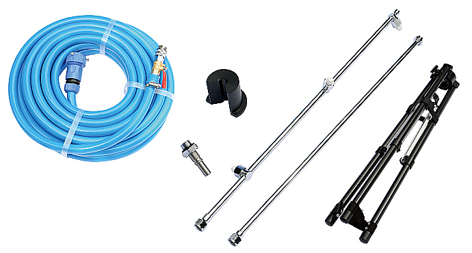 | ■特長 ●冷却効果-6.5℃ 一番高温の地面近くの温度を下げることにより、M2959-S441Mは間接的に気温、体感温度の降下を実現します。 (メーカーの検証により、高さ1m地点で、ミスト未使用時と比べ平均 6.5℃も気温が低い結果となりました。) ![]() ●2WAYスタンド スタンドは、ミストスタンドのほか、パラソルスタンドとしても使用出来ます。 ※パラソルは別売りです。 ![]() ●オールインワンモデル 10mホースが標準で付属したオールインワンモデルです。 このセット1つで、すぐに使用することが可能です。 ![]() ●360°広がるミスト ノズルは120°ずつ均等に取り付けられ、360°均等にミストが広がります。 ![]() ●70-80ミクロン細霧 ポンプ等の大掛かりな設備無しで、70-80ミクロンの非常に細かな霧が出ます。 ![]() ●簡単組立5ステップ ![]() ●0.75円/時間の経済性 使用する水量は1時間あたり7.5L。1時間あたりの水道料金0.75円 (2018年大阪市の水道料金に基づき算出)と、ランニングコストも安価です。 ●コンパクト収納 収納時には幅61cm、奥行18cm、高さ43cmのサイズになります。 使用しない冬場でも、収納場所を取りません。 ●水道水に含まれる、ミネラル成分が詰まりにくいノズルを採用しています。 目詰まりした場合にはノズルのみを取り外して掃除する事も可能です。 ![]() ■仕様