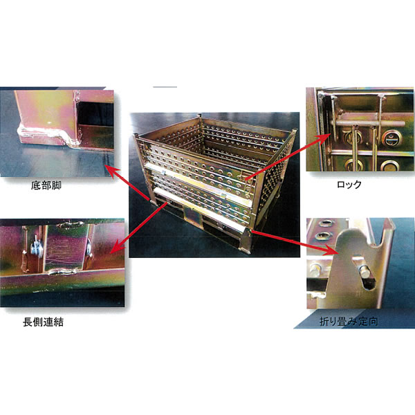 組立式のリフトボックスパレット | 折畳パンチングボックスパレット 品番 M2985W-100QKJ 価格は下記をご覧下さい |