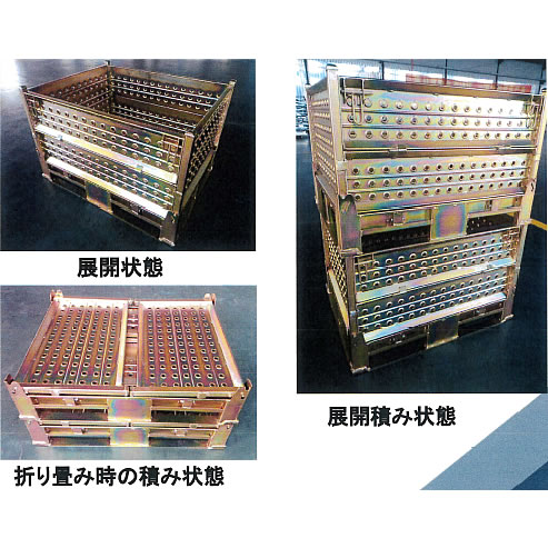 | ■特徴 ●中国で5種類の特許を取得(発明特許1種類、外観使用特許4種類) ●組立が簡単で、操作も容易にできます、本体と面板はむらのないように穴あけ、ワンプレス成形、本体の重量が軽く、重量物の積載が便利です。 ●収納状態で積み重ねることができ、空間節約、立体的な保存が可能 ●折り畳み時でも収納状態で積み重られ、使用面積が減少、物流輸送コストを削減 ●表面は青白、カラーのメッキ処理が可能、環境にやさしく、美観に優れ、耐久性もあります。 ■用途 ダイカスト、キャスティング、車部件、バイク用部品、金属プレス部品、建設機械部品、金属製品、パイプ、ギア、建築浴室部品、照明、家具、おもちゃ、郵政物流、医薬物流、商店スーパー、飲食、食品、農業副産物等工場内部の保管及び輸送 ■各部詳細 ![]() ■使用状態 ![]() ■各部品 ![]() ![]() ■折り畳み ![]() ■使用例 ![]() ![]() ![]() ![]() ![]() ■仕様