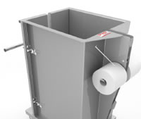 | ■特長 ●使いやすい ●手動なので電力は不要 ●0.5m2未満の床面積が必要 ●内容物はコンパクトな圧縮梱包を実現 ●圧縮梱包物の重量は約10~25 kg ●圧縮梱包物サイズにより、EURパレットに4つの梱包物が積載可能 ●プラスチック材料の効率的な圧縮により、輸送コストや運用コストを削減 ●キャスターはロックできます。 ■使用方法 (1)本体背面に結束紐が配置できます。 ![]() (2)結束紐はチャンバーの床に沿って引き下げ、前扉から引きだします。 ![]() (3)材料をチャンバーに投入し、圧縮プレートレバーを押し下げます。 ![]() (2)圧縮プレートレバーを下げると自動でロックがかかり圧力をかけ続けます。 ハンドグリップを握ると、圧縮プレートレバーのロックは解放されます。 ![]() ■仕様