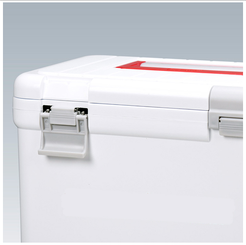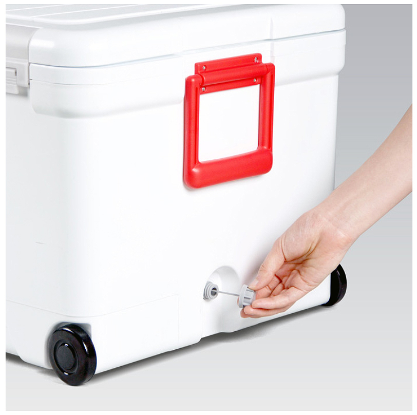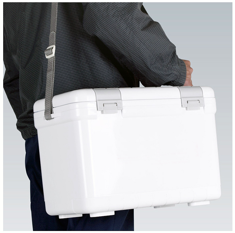 ●丈夫で錆ないステンレスバックル(48L) ![]() ■保冷試験済み 室温26℃の状態で、内容量に対して約30%の板状氷をクーラーボックス内に入れ、ボックス内の温度変化と完全に氷が溶けるまでの時間を測定。 ![]() ※天候状況などによって溶けきるまでの時間は異なります。 ■外観