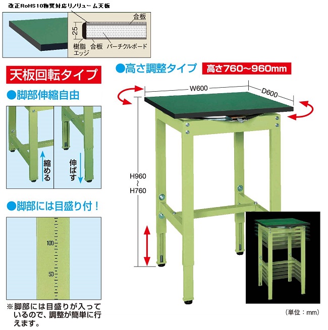 改正RoHS10物質対応リノリュームを使用した角型天板仕様 |