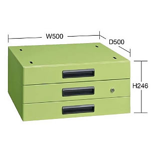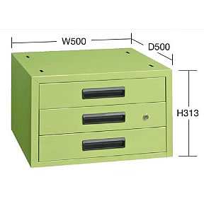 ■オプション キャビネット ●奥行450mm以外の作業台全て及び一人用作業台に取付可能です。 ●2段・3段引出しタイプは1つの錠前で全ての引出しがロックできます。