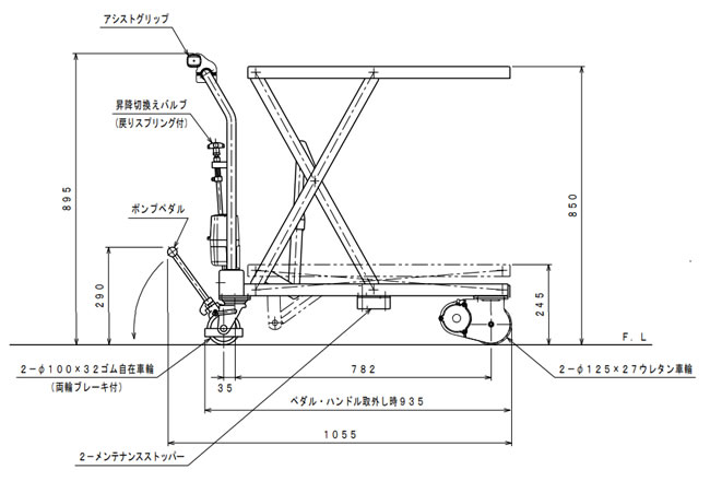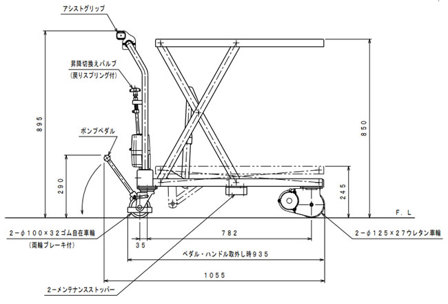 電動アシスト油圧リフター台車 品番 M37TAS250-8W 廃番 |