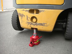 | ■特長 ●超低床3段伸びの油圧ダルマジャッキです。 ●フォークリフトのタイヤ交換等で使用されています。 ![]() ●130mmから274mmまで一気に持ち上げます。 ![]() ●球面ヘッドキャップで「耐偏荷重性」が向上しました。 ![]() ●オーバーロードを防ぐ安全弁を備え、作業時の安全性を高めています。 ●操作部の差し込みソケットが自在に回転。 後方に障害物がある狭い場所でも障害物を交わしてのポンプ操作が可能です。 ■仕様