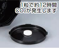 ※軒先に設置する場合は、雨や水がかからないようにご注意して下さい。 ※日中や設置場所によっては効果が得られにくい場合があります。 ■オプション ●CO2発生誘因剤 CO2発生剤は虫の誘引効果をより高めるための錠剤(薬剤)ですので、使用されない場合でも捕虫は可能です。 1粒で約12時間CO2が発生します。 昼間など周囲が明るい場合にご使用ください。夜間や周囲が暗い現場では必要ありません。 刺激臭がするため直接臭いを嗅がないようにご注意ください。 ![]()