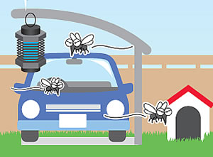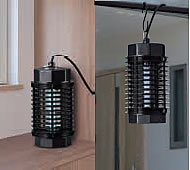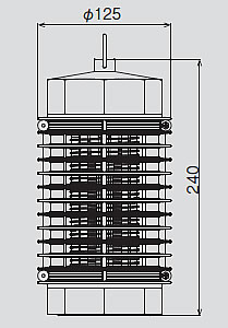 | 電撃式殺虫器 UV光源とCO2発生剤(オプション)で蚊や虫を誘引、高電圧でやっつける。 ![]() ■特長 ●高電圧で感電 UV光源とCO2発生剤(オプション)で誘引された蚊や虫を高電圧で感電させ、駆除します。 ![]() ●CO2発生剤で誘引 生物の呼吸を疑似するCO2発生剤で蚊や虫の誘引効果を高めます。 取扱いしやすいタブレット形状です。 ※刺激臭がする為、直接臭いを嗅がないようにご注意ください。 ![]() ●使いかたは2通り 据え置き設置、吊り下げ設置ができます。 ![]() ●省エネ設計 電気代は1時間で約0.12円 24時間で約2.88円 1ヶ月で約89.28円 ※電気料金単価を20円/kwhで計算しています。 ●ブラックボディ 黒色を好む習性を利用し誘引効果を高めます。 ![]() ●1粒で約12時間CO2が発生する誘引剤(オプション) 蚊を誘引するCO2発生剤。誘引効果をより高めるための錠剤です。 ![]() ■使用方法 ●近紫外線で誘引 蚊や虫が好む紫外線に近い360~400nm波長域のLED光と人体に近い温度を発し誘引します。 ![]() ●高電圧で感電 近づいた蚊や虫が本体内部の電撃格子に触れると感電、駆除します。 ![]() ●溜まった死骸を廃棄 虫受け皿に溜まった死骸を廃棄し、電撃格子の清掃を行って下さい。 ![]() ■使用例 玄関、勝手口(外)、自動車整備工場など、開放された作業場 ![]() ※軒先に設置する場合は、雨や水がかからないようにご注意して下さい ※乳幼児やペットが触れない場所で設置・使用して下さい。 ※日中や設置場所によっては効果が得られにくい場合があります。 ■寸法図 ![]() ■仕様