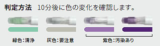 ■オプション <M559XL-100S> ●製造ラインや作業現場の洗浄管理や衛生教育、手洗いの効果の確認に適しています。 ●ATPを指標とした洗浄後のモニタリングシステムです。数値で測定でき、専用ソフトを活用するとデータの分析と管理ができます。 <M559QT-200S> ●CIP洗浄後のリンス水など水中に含まれるATPの測定ができます。 ●ATPを指標とした洗浄後のモニタリングシステムです。数値で測定でき、専用ソフトを活用するとデータの分析と管理ができます。 <M559RO-50S> ●製造ラインや作業現場の洗浄レベルの確認と衛生教育に適した、タンパク質を指標とした洗浄後のモニタリング製品です。色の変化によって洗浄度がわかります。 ●3ステップの測定10分後の色の変化(緑、灰色、紫色)で洗浄レベルが誰でも簡単に確認できます。 ●高感度(約50μgタンパク質)です。 ![]() <M559CIT-50S> ●製造ラインや作業現場の洗浄レベルの確認と衛生教育に適した、タンパク質を指標とした洗浄後のモニタリング製品です。色の変化によって洗浄度がわかります。 ●測定30秒後の色の変化(黄色→青緑色)で洗浄レベルが確認できます。 ●比較的安価な価格設定ですので、定性的な判断で管理できる場所にはお奨めです。 ![]() <M559LLTEC-60S> ●タンパク質を高感度で検出しますので、製造ラインでのアレルゲンのコンタミネーションリスクを簡単に、低コストで管理できます。 ●スワブで拭き取り、試薬と反応させ、加熱後(55℃で15分、37℃で45分)の色の変化(緑、灰色、紫色)で洗浄レベルが確認できます。 ●最少3μgの残留タンパクが確認できますので、アレルゲンの混入リスクを管理できます。