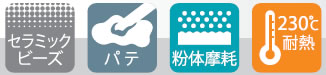 激しい粉体摩耗を受ける装置の補修と再生に最適。 金属、セラミックやコンクリートへの接着力が非常に強く、エクスパンドメタルを併用することで衝撃をのかかる摩耗にも効果を発揮します。 ●耐紛体摩耗金属用補修剤速硬化パテタイプ(セラミックビーズ入り)/M64V-CWR11450D ![]() ![]() 耐摩耗性に優れた2種類のサイズの異なるセラミックビーズとシリコンカーバイトのチップが緊密な状態で強固に硬化し、セラミックビーズタイプの中で、最も優れた耐摩耗性を有しています。 圧送配管、スクリューコンベアーIDファンのブレードの粉体による摩耗損傷から設備を保護します。 速硬化性で、作業性が良好。 ●耐紛体摩耗金属用補修剤耐熱パテタイプ(セラミックビーズ入り)/M64V-CWR11480D ![]() ![]() 耐熱性を有しているので、高温で激しい粉体摩耗の起こる箇所の補修に最適。 優れた圧縮強さを有している。 ●耐蝕・耐摩耗金属用補修剤速硬化パテタイプ(チタニウム入り)/M64V-CWR10760D ![]() ![]() モーター軸、シャフトの再生補修、ケーシング及びハウジングの摩耗、腐食からの保護等に適しています。 鉱物油、ガソリン、水に優秀な耐性を有し、その他多くの薬品にも耐性を有しています。