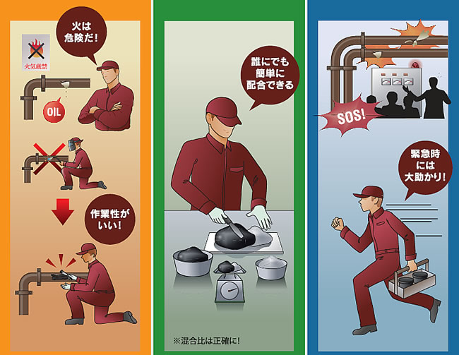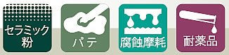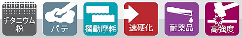 耐蝕・耐摩耗金属用補修剤 設備機器の摩耗部の再生補修や、事前保護による耐久機関延長を図り、トータルコストの削減を実現。 |