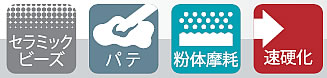| ■補修 ●廃プラスチックが当たり、穴が開いてる配管のエルボー部を補修 ![]() ●ブラッシャブルセラミックとセラミックリペアーを使用して、チューブ式熱交換器管板面の恒久的な補修ができる。 ![]() ■再生 ●チタニウムパテでシャフトの補修、再生が可能 ![]() ■使用方法 ●錆、塗装等をケレン処理により目粗し除去