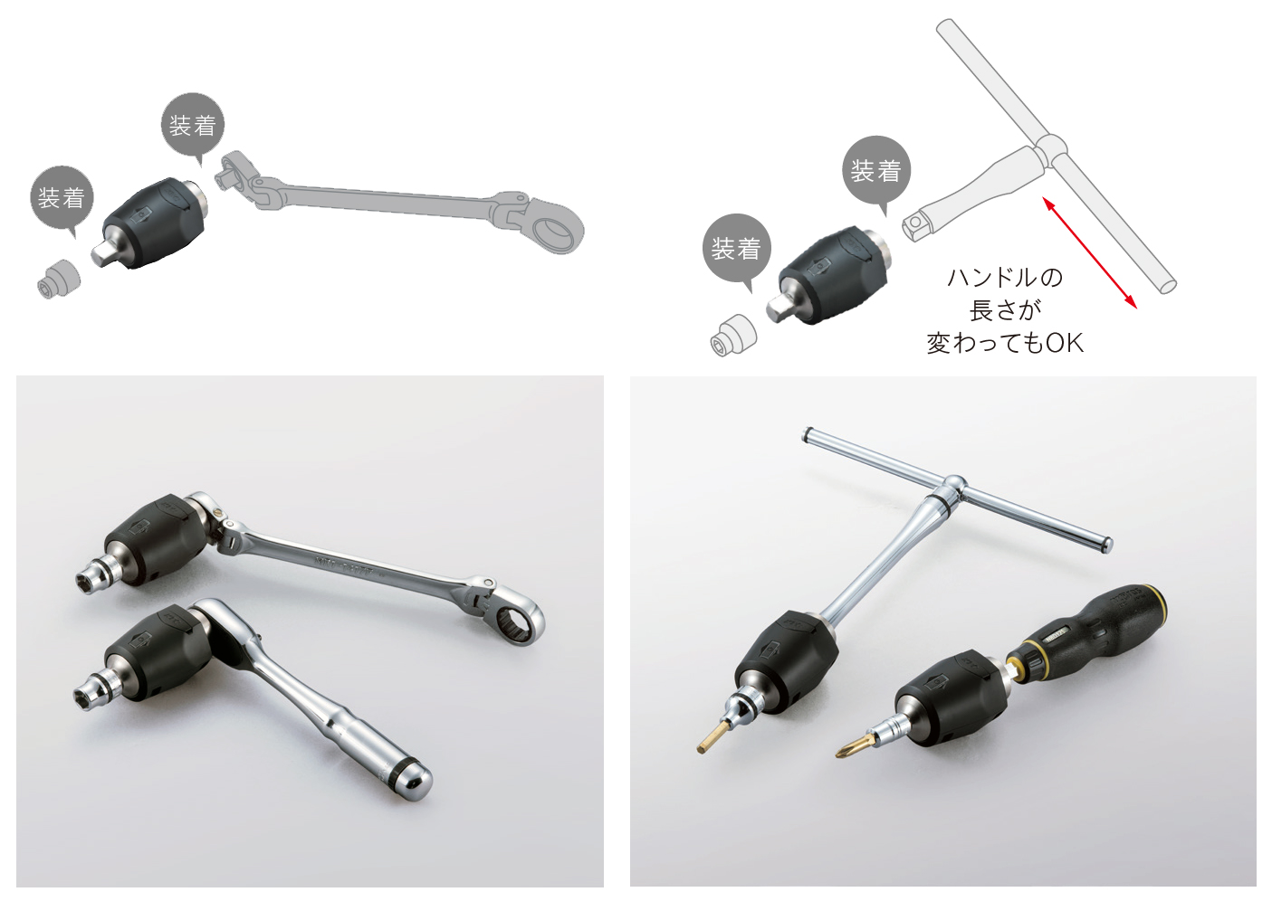 | ■特長 ●工具を選ばず装着するだけ高精度なトルク測定機能 測定をボルトと同軸上で行うので、長さの違うレンチやハンドルの角度が変わるフレックスタイプ、ドライバ型ハンドルなど、工具を選ばず高精度なトルク測定ができます。 ![]() ●専用アプリにより実現する高精度な作業履歴管理 お手持ちのスマートフォンやタブレットなどに専用アプリをインストールするだけで、測定値の結果表示やデータの転送はもちろん、測定履歴の管理といった作業トレーサビリティを実現します。 ![]() ■寸法図