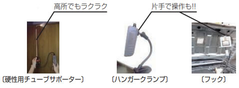 | ■特徴 ●一台で直視・側視・2方向可動機能を持った優れもの ●抜群の操作性!! ①先端2方向可動:ダイヤル切替②直視・側視:ボタン切替 ●3段階ズーム(×1、×3、×5)、画面回転(90°) ●SDカード対応 ●モニタ画面も安心のIP55防水(※チューブ:IP67) ■タイプ ![]() ■オプション ![]() ■仕様