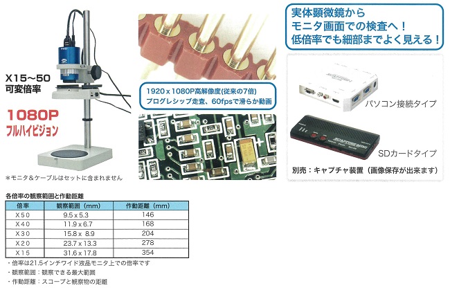 ■特長![]() ■用途 ●自動車部品会社の外観検査で多数採用の信頼性 ●実体顕微鏡の代わりに使用すると疲れません ●バリ、キズ、異物混入の目視外観検査に最適 ●ロングワークタイプで作業をより快適に! ■仕様