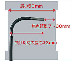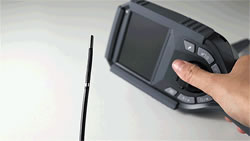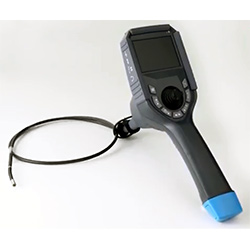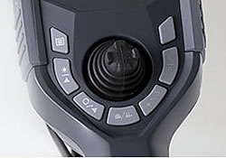 | ■特長 ●見たい場所へ瞬時にカメラを向けられる抜群の操作性 この先端可動式工業用内視鏡はなめらかな操作性を実現し、見たい場所にカメラを瞬時にむけることができるので、作業スピードが速くなり、効率化を図れます。 ![]() ●ジョイスティック3つのポイント ①可動域が広い 水平方向360度、垂直方向最大180度の先端可動で、隅々までカメラが映像をとらえ、傷や欠陥を見逃しません。配管の側面確認も簡単に行えます。 ![]() ②指を離しても自動でロックがかかる この内視鏡のジョイスティックは自動でロックがかかるため、手を離しても先端カメラはそのままの状態をキープします。 そのため、ジョイスティックを抑え続けて指が疲れるということがありません。 ![]() ③抜群の操作性を実現 本体を持つ手と、ジョイスティックを操作する手で両手がふさがる内視鏡もありますが、この内視鏡は、片手で持ちながら自由に操作できるので便利です。 指を軽くあてるだけでなめらかに、直感的に動くので、観察中の手の疲れや、思い通りに動かないストレスから解放されます。 ![]() ●先端径が3.9mmと6mmタイプをご用意。細く、狭い配管内の点検が可能です。 ●先端を曲げた時の長さが短く、内部側面の確認に最適 この内視鏡は曲げた時の長さが43mmと一般的な内視鏡と比べ短いので、細く狭い内部側面にてきしています。