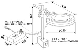 | ■MA77EKW-B-2Xシリーズ特長 ●MA77EKW-B-2X型は、作業台等の上に置いて使用する最もスタンダードな形状の照明拡大鏡です。 ●光源のLEDは30W型蛍光管と同じ形状に成形をされ、発光面側に樹脂製保護カバーを装着してあります。 また、照明の配光特性も蛍光管と同等レベルにし、蛍光管式照明拡大鏡からの置換もスムーズです。 ●ボリューム式スイッチにより、照明の明るさを100%~50%の間の任意の明るさに調節することが可能です。 ■MA77EKW-CL-2Xシリーズ特長 ●MA77EKW-CL-2Xシリーズ型はレンズ周囲の落射照明と、ボックス部の透過照明の2つの照明を持つ製品で、LEKシリーズでは個別に点灯、消灯調光が可能です。 ●落射照明による外観検査以外に、透過照明を利用した透過性対象物の内部の検査や、外周部の状態確認が可能です。 ●光源のLEDは30W型蛍光管と同じ形状に成型をされ、発光面側に樹脂製保護カバーを装着してあります。 また、照明の配光特性も蛍光管と同等レベルにし、蛍光管式照明拡大鏡からの置換もスムーズです。 ●調光ツマミにより、照明の明るさを100~50%の間の任意の明るさに調節することが可能です。 ■MA77EKW-CF-2Xシリーズ特長 ●MA77EKW-CF-2Xシリーズ型は、作業台等にクランプ固定して使用するアーム式の照明拡大鏡です。 ●アームはスプリングにより任意の位置へ可動、静止する事が可能で、作業スペースを大きくとる事が出来、MA77EKW-CF-2Xシリーズ型では短いアームにより設置スペースの少ない環境でもお使い頂く事が可能です。 ●光源のLEDは30W型蛍光管と同じ形状に成型をされ、発光面側に樹脂製保護カバーを装着してあります。 また、照明の配光特性も蛍光管と同等レベルにし、蛍光管式照明拡大鏡からの置換もスムーズです。 ●調光ツマミにより、照明の明るさを100%~50%の間の任意の明るさに調節する事が可能です。 ■MA77EKW-F-2Xシリーズ ●MA77EKW-F-2X型は、作業台等にクランプ固定して使用するアーム式の照明拡大鏡です。 ●アームはスプリングにより任意の位置へ可動、静止する事が可能で、作業スペースを大きくとる事が出来ます。 ●光源のLEDは30W型蛍光管と同じ形状に成型をされ、発光面側に樹脂製保護カバーを装着してあります。 また、照明の配光特性も蛍光管と同等レベルにし、蛍光管式照明拡大鏡からの置換もスムーズです。 ●調光ツマミにより、照明の明るさを100%~50%の間の任意の明るさに調節する事が可能です。 ■MA77EKW-FD-2Xシリーズ ●MA77EKW-FD-2Xシリーズ型は、作業台等にネジ止め固定して使用するフランジベースを装備したアーム式の照明拡大鏡です。 ●クランプで製品を固定するする事が出来ない(背後に壁等の有る様な)環境に適しています。 ●アームはスプリングにより任意の位置へ可動、静止する事が可能で、作業スペースを大きくとる事が出来ます。 ●光源のLEDは30W型蛍光管と同じ形状に成型をされ、発光面側に樹脂製保護カバーを装着してあります。 また、照明の配光特性も蛍光管と同等レベルにし、蛍光管式照明拡大鏡からの置換もスムーズです。 ●調光ツマミにより、照明の明るさを100%~50%の間の任意の明るさに調節する事が可能です。 ■MA77EKW-D-2Xシリーズ ●MA77EKW-D-2Xシリーズ型は作業台等にネジ止め固定するフランジベースを装備した製品です。 ●定常的な使用で製品位置を固定したい場合に有効な製品形状です。 ●光源のLEDは30W型蛍光管と同じ形状に成型をされ、発光面側に樹脂製保護カバーを装着してあります。 また、照明の配光特性も蛍光管と同等レベルにし、蛍光管式照明拡大鏡からの置換もスムーズです。 ●ボリューム式スイッチにより、照明の明るさを100%~50%の間の任意の明るさに調節する事が可能です。 ■MA77EKW-MS-2Xシリーズ ●MA77EKW-MS-2Xシリーズ型は、鉄等の金属上に付属のマグネットスタンドの磁力で製品固定、使用する製品です。 ●拡大鏡を常時使用をしない場合や、使用場所を移動する事が多い環境で有効な製品形状です。 ●光源のLEDは30W型蛍光管と同じ形状に成型をされ、発光面側に樹脂製保護カバーを装着してあります。 また、照明の配光特性も蛍光管と同等レベルにし、蛍光管式照明拡大鏡からの置換もスムーズです。 ●ボリューム式スイッチにより、照明の明るさを100%~50%の間の任意の明るさに調節する事が可能です。 ■MA77EKW-ST-2Xシリーズ ●MA77EKW-ST-2Xシリーズ型は、支柱に付属したクランプで作業台等に固定して使用する自由度と使い易さを両立した製品です。 ●支柱と横棒をXY方向に配置しており、長い横棒の効果で限定的ながらフリーアーム的な使用も可能です。 ●光源のLEDは30W型蛍光管と同じ形状に成型をされ、発光面側に樹脂製保護カバーを装着してあります。 また、照明の配光特性も蛍光管と同等レベルにし、蛍光管式照明拡大鏡からの置換もスムーズです。 ●ボリューム式スイッチにより、照明の明るさを100%~50%の間の任意の明るさに調節する事が可能です。 ■各部機能