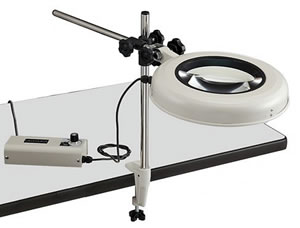 光源に円形蛍光灯型LEDランプを採用。お客様の目視検査工程を、長寿命かつ省エネ性能により強力にサポートします。 照明は無段階で長光することができます。 |