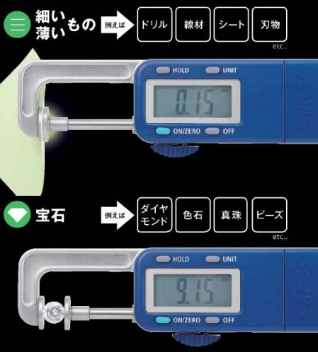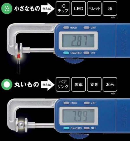 小さなもの丸いものを 素早く測定! 0.01mm~25mmまで測定可能! |