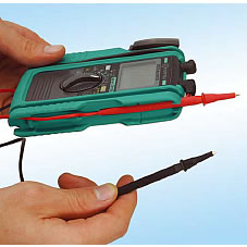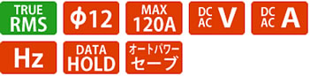 | ■MB23K-2000AK特長 ●新強化保護ブッシュ付き ●オープンコアタイプクランプセンサで60AまでのAC/DC電流測定が可能 ●被測定可能導体径 約φ6mm ●3400カウントバーグラフ付ディスプレイ ●収納に便利なポケットサイズ ●衝撃に強いホルスターケース ●最小分解能AC/DC 0.1A ●先端ピン長18mm ■MB23K-2001AK特長 ●新強化保護ブッシュ付き ●オープンコアタイプクランプセンサで100AまでのAC/DC電流測定が可能 ●被測定可能導体径約φ10mm ●3400カウントバーグラフ付ディスプレイ ●収納に便利なポケットサイズ ●衝撃に強いホルスターケース ●最小分解能 AC/DC 0.1A ●先端ピン長 18mm ■MB23K-2012RAK特長 ●新強化保護ブッシュ付き ●オープンコアセンサでAC/DC電流測定が可能 ●被測定導体径φ12mm(Ⅳ38mm2まで対応) ●歪んだ波形でも正確に測定できる真の実効値測定 ●DCAゼロ調整がワンタッチ ●短絡防止の測定コードキャップ付(取り外し可) ●ダイオード、キャパシタンス測定機能付 ●収納に便利なポケットサイズ ●衝撃に強いホルスターケース ●最小分解能 AC/DC 0.01A ●先端ピン長 18mm ■タイプ