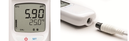 ■特長 ●校正後のpH電極の状態を画面表示できるようになりました。 ●校正を行った標準液値を画面表示できるようになりました。 ●pH電極のチェックを行えるpH-mV表示もできるようになりました。 ●IP67の防水。本体も従来機種よりさらに頑丈になりました。 ●電極接続部はクイックDINタイプで本体への接続が簡単。接続部も防水仕様になりました。 ■食肉の測定に適したpH電極を採用。 付属のステンレス刃を装着し食肉に突き刺し測定が可能です。 液絡部はオープンジャンクションのため詰まりを最小限に抑えます。 食品向けでも使用されるPVDF製のボディは化学薬品にも耐性があり丈夫。(電極先端部はガラス製) 電極は増幅器を内蔵しておりノイズ誤差を防ぎ、かつ素早く安定した測定を可能にします。 ![]() ■校正後12時間はpH電極の状態を画面左側に表示。 本来目に見えないpH電極の状態を把握し メンテナンスや交換時期を適切に判断できます。校正を行った標準液値も画面下段に表示。 電極と本体の接続は簡単。本体はIP67の防水で接続部もしっかり防水仕様です。 ![]() ■その他の特長 ●測定安定マークの表示により読み取りのタイミングをお知らせ ●読み取り値を固定できるホールドボタン ●自動温度補償付き ●単四アルカリ電池3本で約1400時間の使用が可能 ●電池残量が10%を切ると画面上でお知らせ ●持ち運びに便利なケース付き ■仕様
