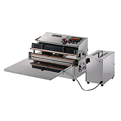 ■特長 ●電源はAC100V、1.5KWと低電力で、家庭用のコンセントで使用できます(片面加熱のみ)。 ●モーター駆動式なので、エア源にコンプレッサーなどの外部配管が不要。電源があればどこでも使えます。さらに、騒音・振動が少なく、排気がないので、良好な作業環境が保てます。 ●インパルス式でシールするのでやけどの心配がなく、節電対策に優れています。 ●ノズル式で脱気するので、脱気時間が短く、ワークの大きさ、形状の自由度が高くなります。 ●タッチパネルで加熱・冷却・脱気時間やノズルの出代の調節など、すべての操作が行えます。 ●ポンプボックスが別置きなので振動がテーブルに伝わりません。 ●ステンレス製なので、いつまでも清潔で長持ち。塗装はがれなどの心配がいりません。 ●テーブルはピン引掛型で、品物に応じて高さと角度の調節ができます。 ■共通仕様