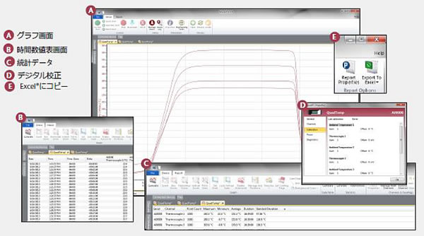 温度データロガーで、内部温度センサーにより、冷接点補正が自動でおこなわれ、精度が向上しています。 測定間隔は1秒間に4回からと、短い時間での温度測定を行うことが可能です。 |